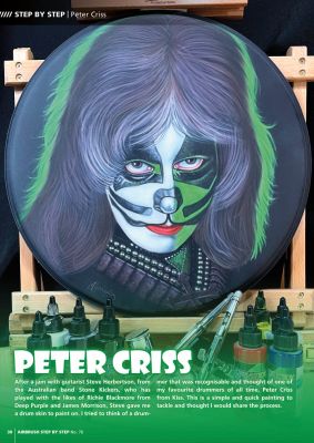 Music fan and airbrush artist Joseph Gonzalez from Australia immortalizes Kiss drummer Peter Criss on a drumhead.