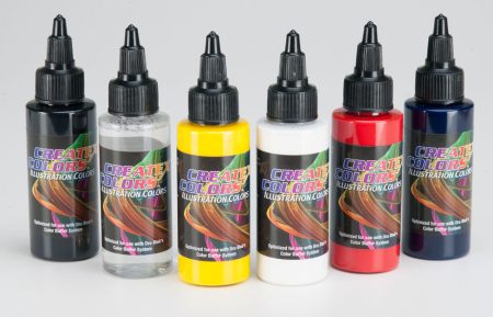 Tim Gore is an extremely talanted artist with over 25 years experience in the film special effects industry. Bloodline™ is a line of airbrush colors specifically created by Tim Gore with colors designed for the subtleties of painting everything from “hyper real” creatures, humanoids and monsters, latex masks, resin kits and anything your imagination can come up with. Bloodline™ is a part of the Createx Illustration Colors™ line. Createx Illustration Colors™ are a refined, water-based airbrush colors optimized for true fine-line, detailed performance while allowing for re-wettable effects and subtle erasing techniques. Illustration Colors are lightfast and durable. No reduction necessary. Illustration Colors atomize and spray excellent through small airbrush tip sizes down to 0.15mm at low psi settings straight out of the bottle. Reducer and Transparent Base is offered in our illustration Colors line for artists wishing to make colors even thinner or more transparent based on subjective preferences, however, most artists will find performance is excellent straight out of the bottle. Illustration Colors are compatible with urethane and most any type of clear, paint and primer.