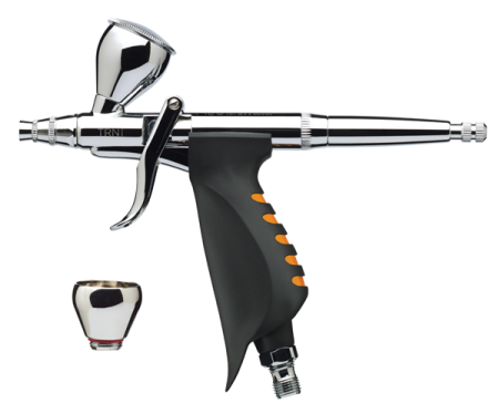 • Includes a 1/4 oz. (7cc) and 1/2 oz. (15cc) gravity side-feed cup and a 1 oz. (30cc) Iwata Big Mouth Bottle. (Also compatible with other sizes of Big Mouth Bottles and Iwata bottles.)