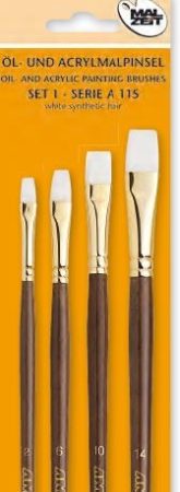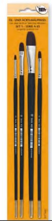 5 synthetic brush “synthetic golden sable hair, metallic blue triangular handles.