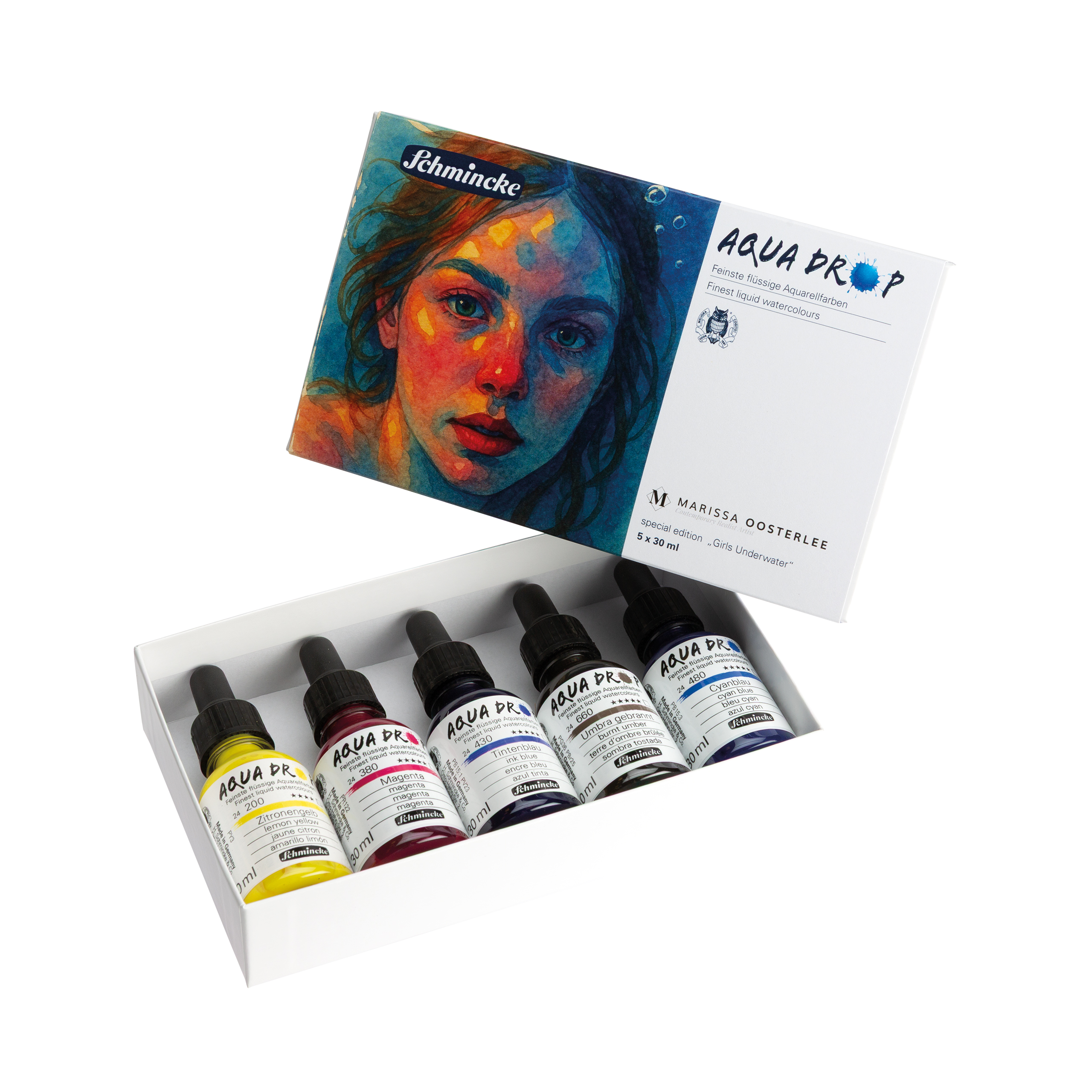AQUA Drop liquid watercolours, with a colour selection curated by internationally renowned airbrush artist Marissa Oosterlee. This exclusive set is designed for artists who demand outstanding performance, brilliance, and reliability.